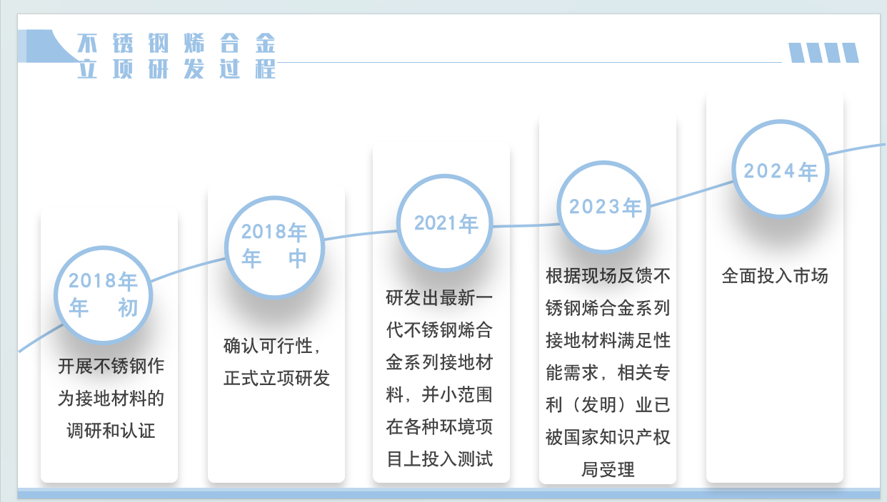 采用外層0.7mm不銹鋼(標(biāo)號(hào)根據(jù)使用環(huán)境選擇)經(jīng)過石墨烯專有配方處理后包覆高導(dǎo)性的合金材(合金材表層也經(jīng)過石墨烯專有配方的涂層處理)經(jīng)過激光焊、拉拔、退火再拉拔、再退火形成的一種導(dǎo)電性優(yōu)越、耐腐蝕能力強(qiáng)的一種新型接地材料。